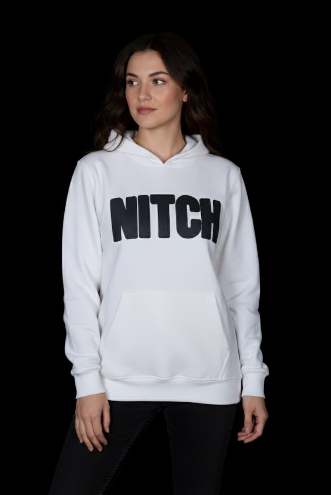 Bring timeless style and elevated comfort into your wardrobe with the NITCH White Hoodie for Women. Crafted from 380 GSM premium heavy cotton fleece, this hoodie delivers a rich, substantial feel the moment you wear it. The exterior carries a clean, structured finish, while the inside is beautifully soft and warm — giving you the perfect blend of coziness and luxury.